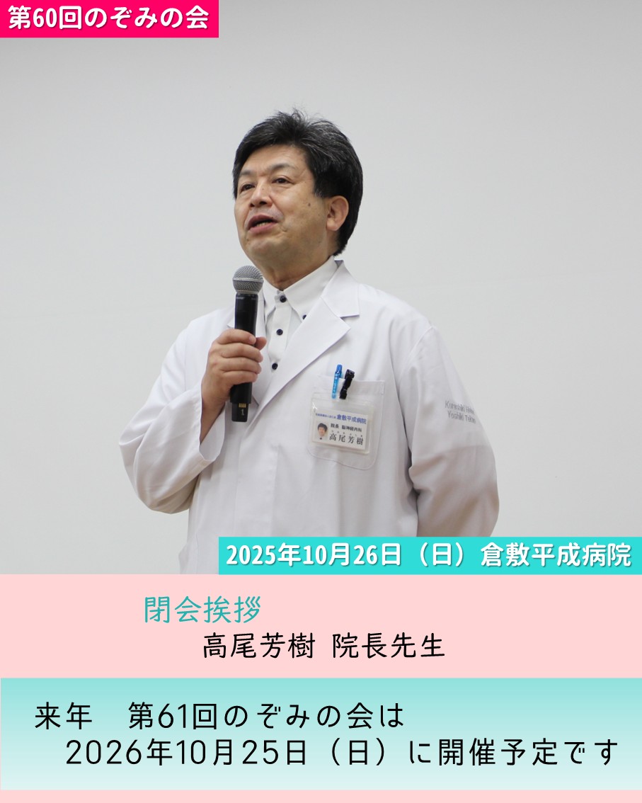 来年の第61回のぞみの会は、2026年10月25日(日)に開催予定です。次回も皆さまと笑顔でお会いできることを、心より楽しみにしています。